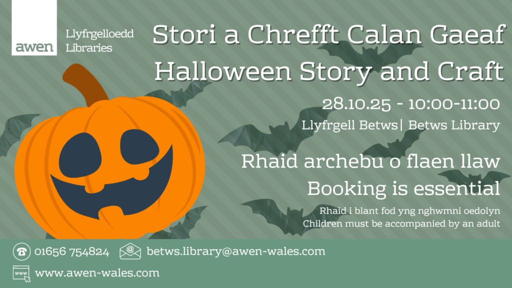 For children 0-3 years, Bounce and Rhyme is 30 minutes of rhymes, singing and bubbles. Join us at 10:30am on Tuesdays during term time at Betws Library.
